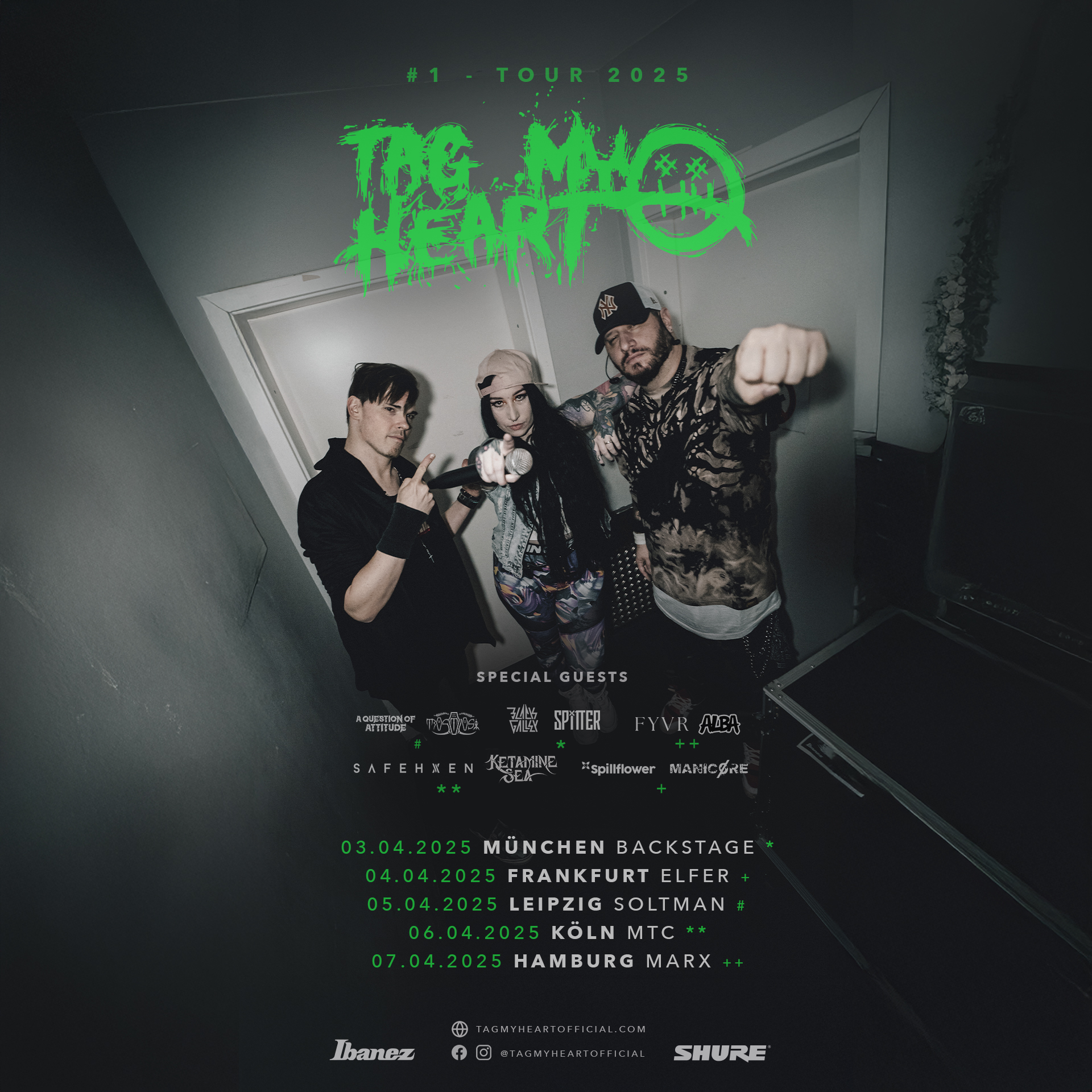 #1 Tour special guest FYVR & ALBA April 7, 2025 Montag @ 7:00 p.m. Hamburg, Germany 19,80 € Ticket Price Get Directions Venue Info Address Markthalle Hamburg Klosterwall 1120095 HamburgGermany Website: markthalle-hamburg.de